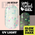 Details: Semi-Cured (UV Light required), Transparent, Glow-in-the-Dark, Glitter, Premium Materials and Glossy