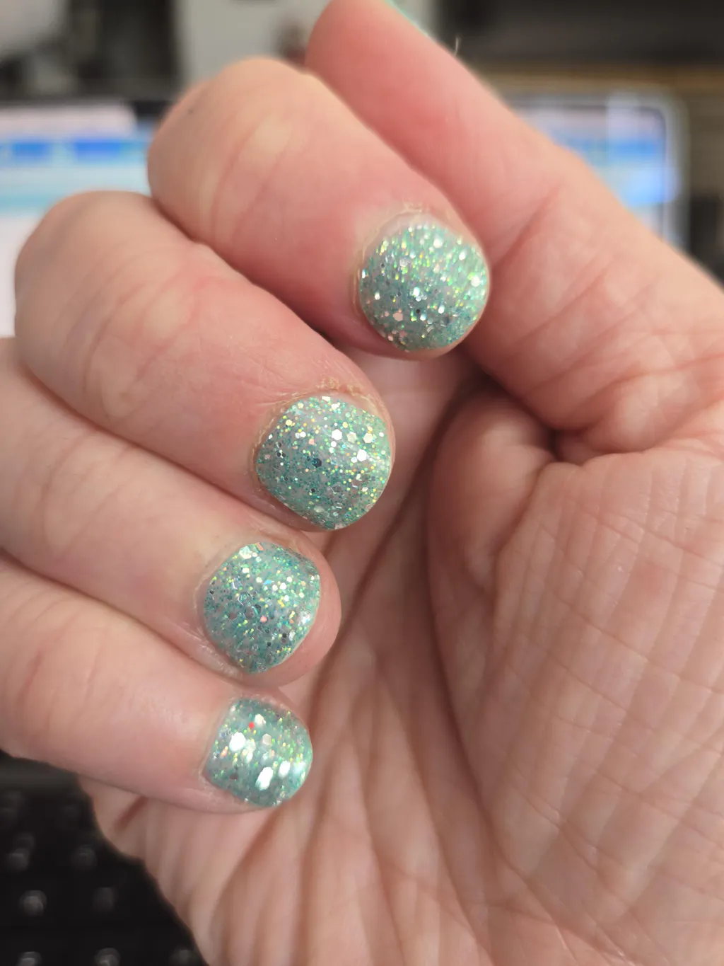 Looked beautiful on and went on easily. Stayed on a decent amount of time. Will def buy again. The sparkle is sooooo gorg