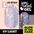 Details: Semi-Cured (UV Light required), Transparent, Glow-in-the-Dark, Glitter, Premium Materials and Glossy