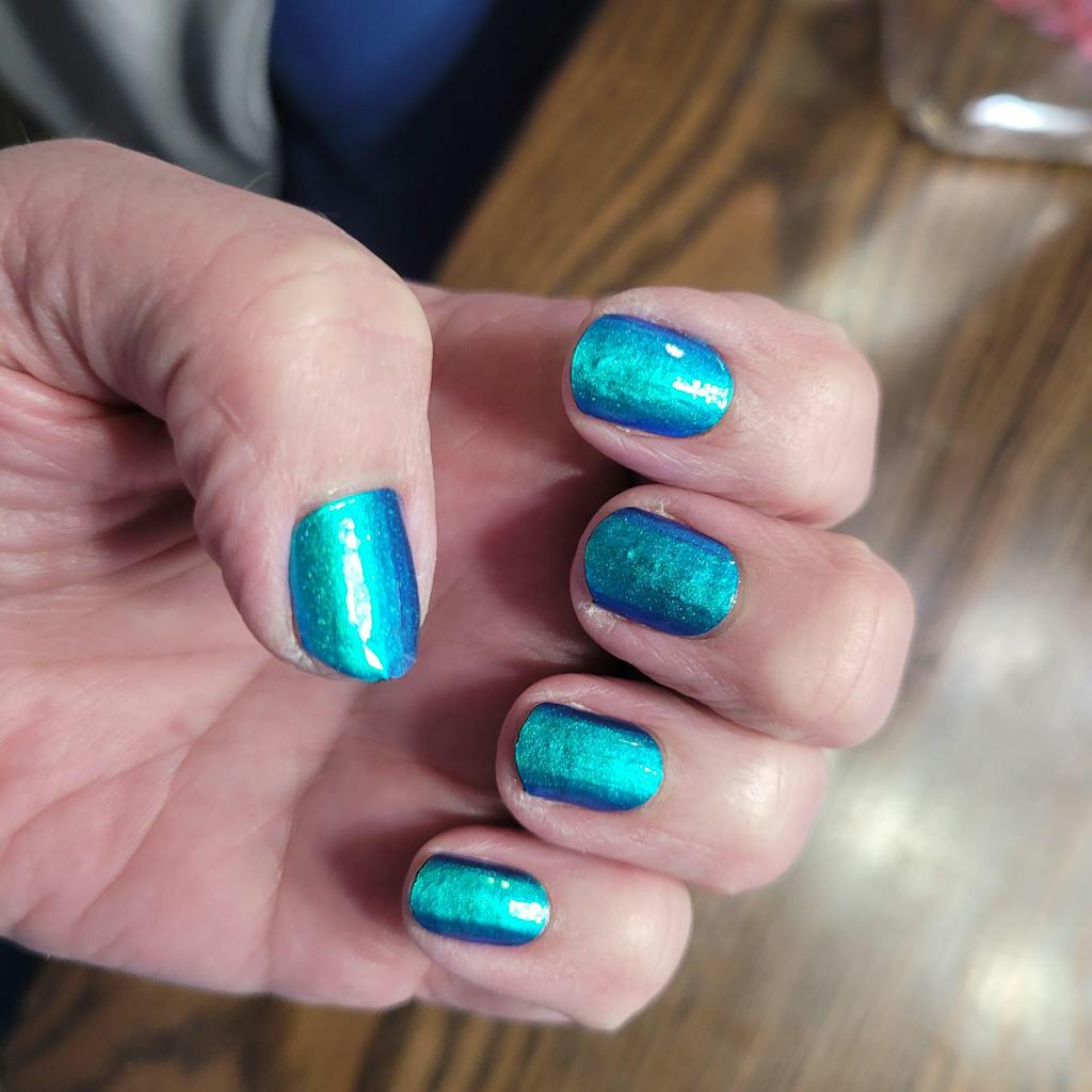 Photos really don't do these justice! They are SO shiny & shifty. At first, I was disappointed because looking at the flat strip I received it didn't seem as vibrant as I thought it would be. However, once I put them on they instantly popped and now I can't wait to try the other "color shifts". These also seem thicker & sturdier than other designs I've tried here.